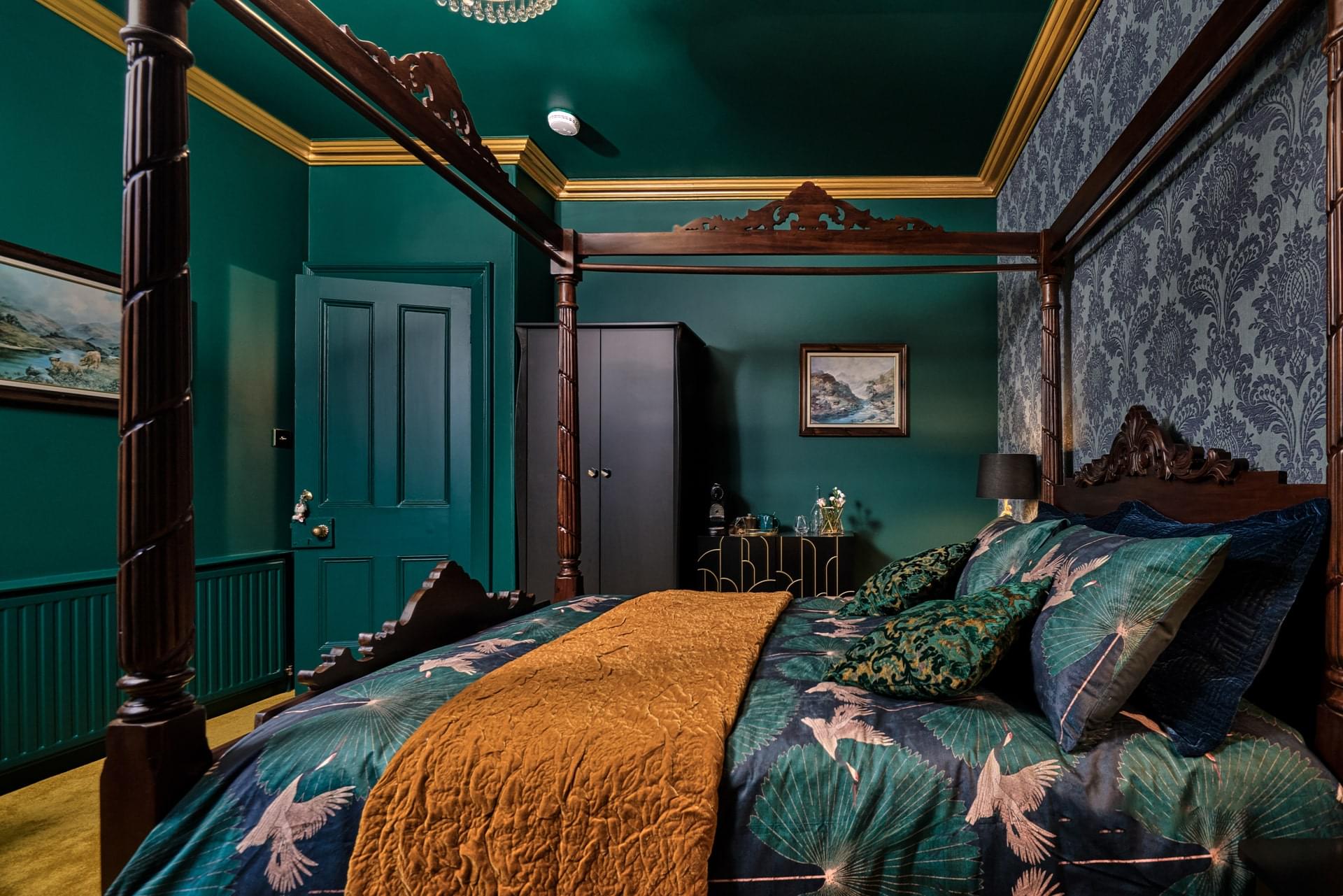 Inspired by the deep, soothing green hues of the ancient Caledonian Forest, our Emerald Bedroom is the quintessence of luxurious cosiness accompanied by the crackling fire of the Jøtul stove. The 15sqm en-suite bathroom is finished in marble and features a centrepiece bath offering garden and mountain views, and a wet room area with a rainfall shower and body jets. All with the extra layer of comfort provided by the underfloor heating.
