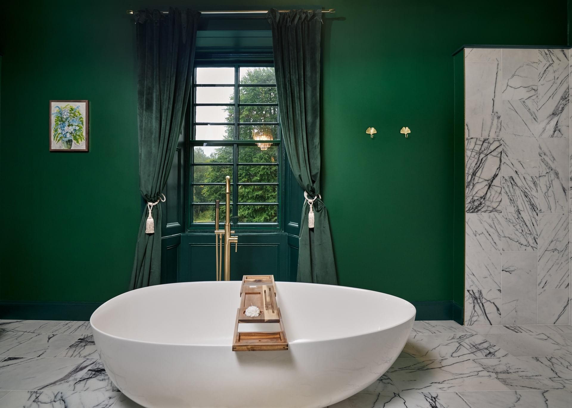 Inspired by the deep, soothing green hues of the ancient Caledonian Forest, our Emerald Bedroom is the quintessence of luxurious cosiness accompanied by the crackling fire of the Jøtul stove. The 15sqm en-suite bathroom is finished in marble and features a centrepiece bath offering garden and mountain views, and a wet room area with a rainfall shower and body jets. All with the extra layer of comfort provided by the underfloor heating.