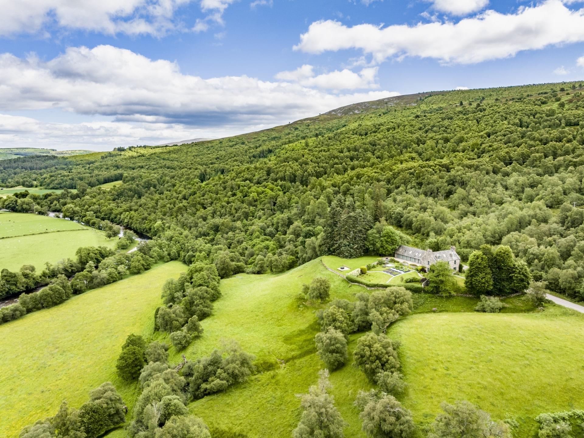 The River Avon gracefully flows through the heart of the valley below the Old Manse, a scenic waterway that originates from Loch A'an within the Cairngorms National Park, enhancing the natural beauty of the area and providing opportunities for peaceful walks and salmon fishing along its banks. Meanwhile, just above the property, a short hill walk up, the Cairnacay offers a breathtaking panorama of Glenlivet Estate and the expansive countryside beyond.